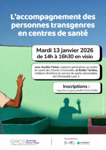 Nous vous rappelons l’événement à venir : « L’accompagnement des personnes transgenres en centres de santé », organisé par le GRCS AURA.